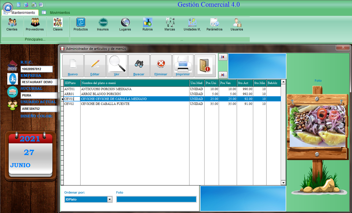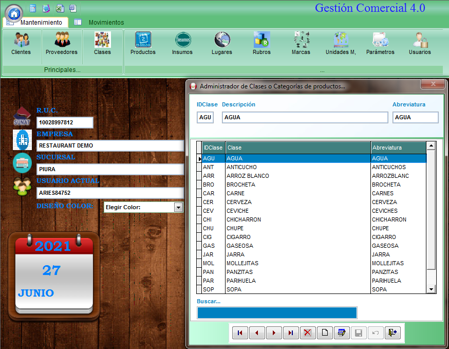comerciales de toda la empresa: Proveedores, Ventas, Stock, Compras. Esta